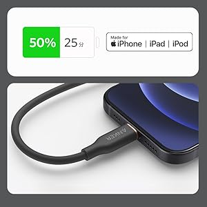 Apple MFi認証済みに加え、弊社による厳格な品質検査を実施しており、iPhoneやiPad、iPod、その他お使いのLightning端子機器を安全にかつ急速充電していただけます。
