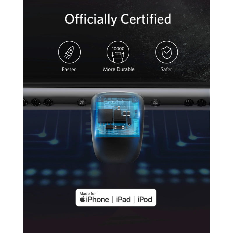 Apple MFi認証済みに加え、弊社による厳格な品質検査を実施しており、お使いのApple製品を安全にかつフルスピードで充電いただけます。最新のLightning端子採用