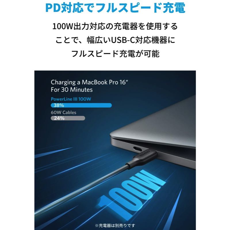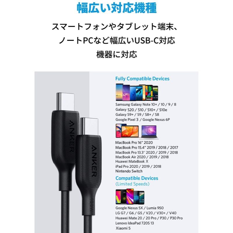 Anker PowerLine III USB-C & USB-C 2.0 100W ケーブル 1.8m