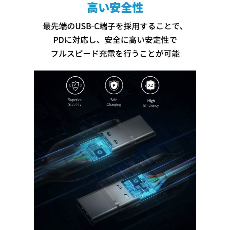 最先端のUSB-C端子を採用することで、USB Power Deliveryに対応し、お使いの機器に安全に高い安定性でフルスピード充電を行うことが可能です。幅広い対応機種
