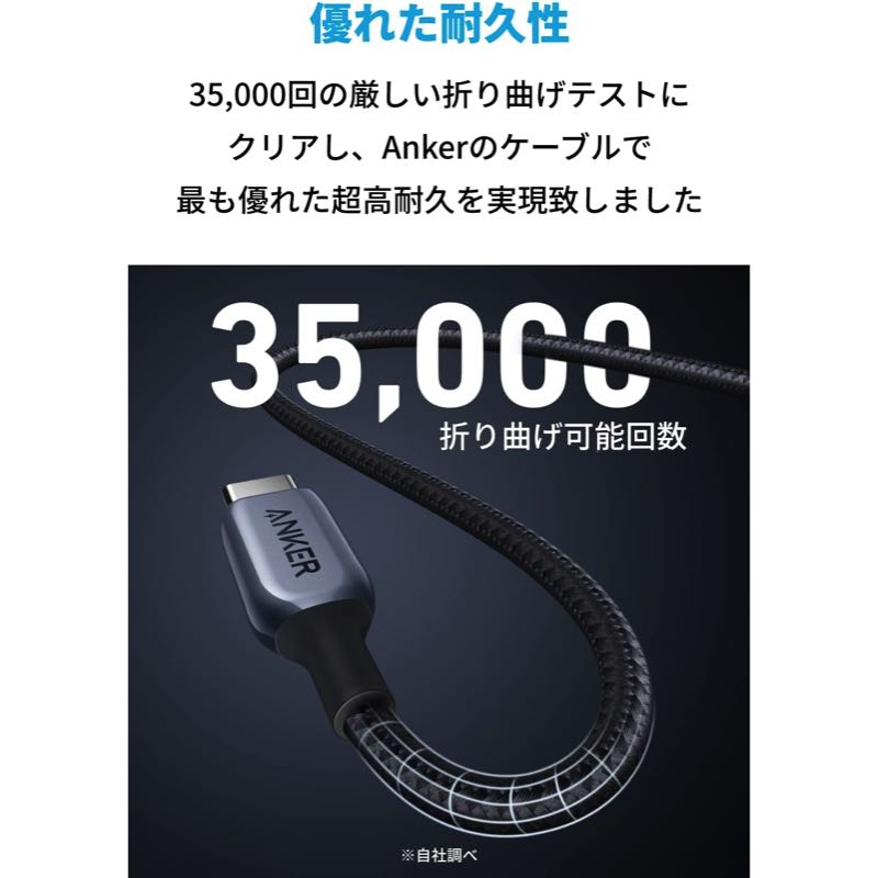 35,000回の厳しい折り曲げテストにクリアしており、Ankerのケーブルで最も優れた超高耐久を実現致しました。製品仕様