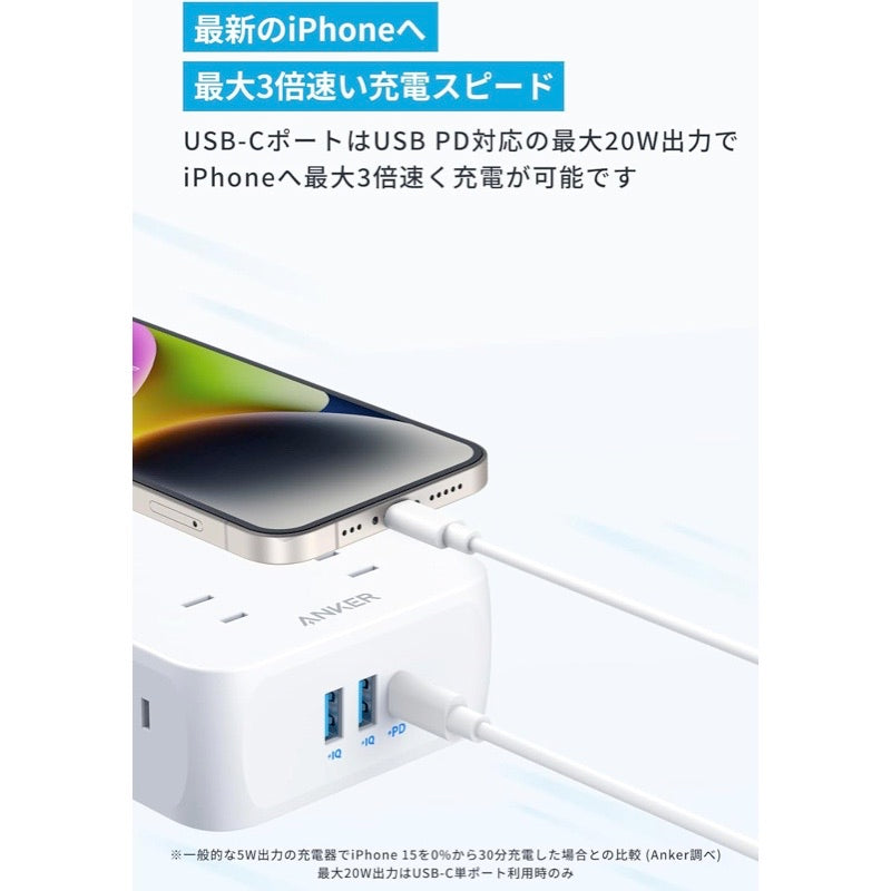 USB PD対応の最大20W出力で、iPhoneシリーズへ急速充電が可能です。 (Anker調べ。 最大20W出力はUSB-C単ポート利用時のみ)