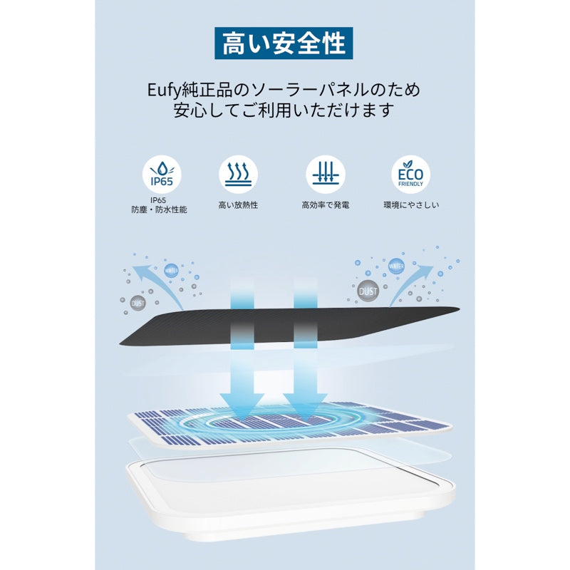 Eufy純正品のソーラーパネルのため安心してご利用いただけます。