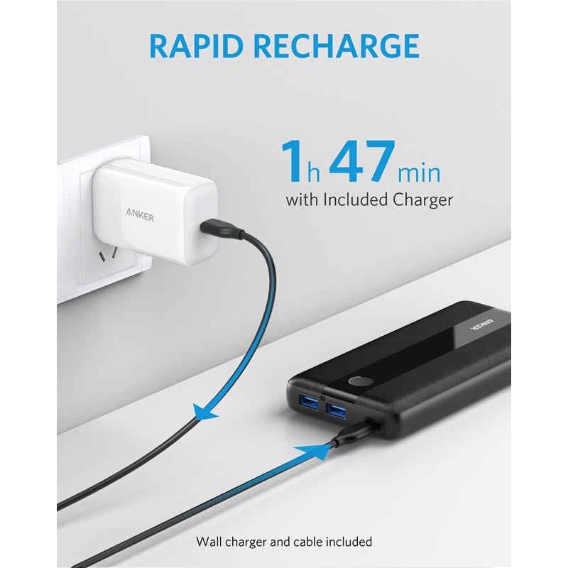 付属の最大65Wの高出力を実現したUSB-C急速充電器「Anker PowerPort III 65W Pod」を使えば、USB PD対応のUSB-C入力ポートからわずか約2時間でバッテリー本体を満充電できます。製品仕様