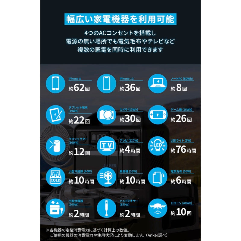 | 補足説明 | Anker 535 Portable Power Station (PowerHouse 512Wh) 製品の仕様・注意点はこちら Anker Solix PS100 Portable Solar Panel 製品の仕様・注意点はこちら |