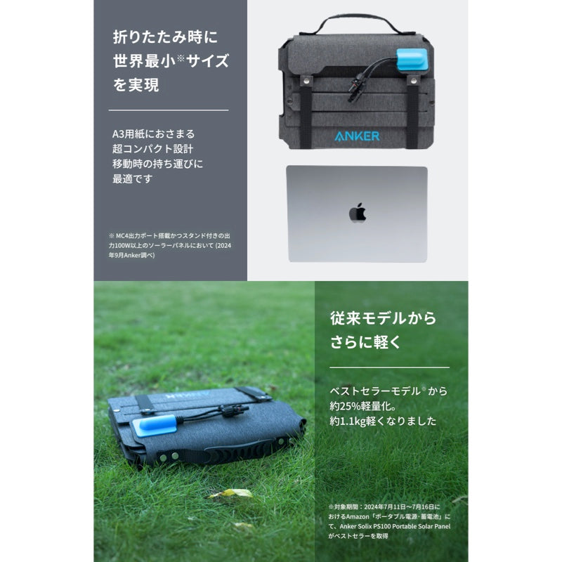 ※ MC4出力ポート搭載かつスタンド付きの出力100W以上のソーラーパネルにおいて (2024年9月Anker調べ)