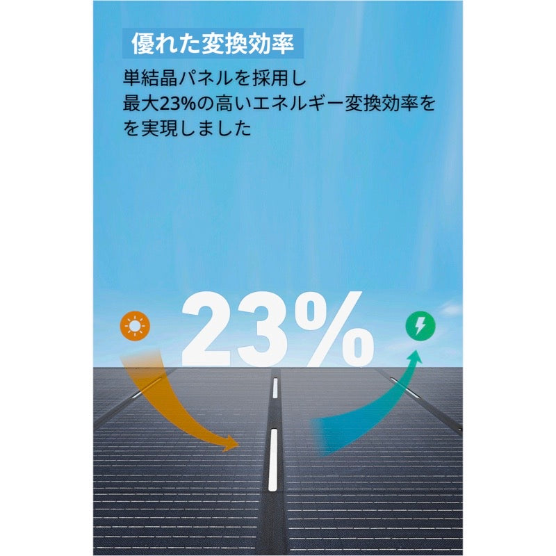 IP67レベルに対応しているため、急に雨が降り出しても慌てて片付ける必要はありません。付属ソーラーパネルの特徴③高効率な単結晶パネル