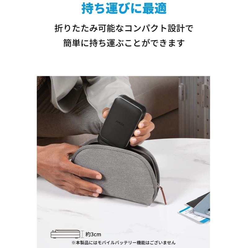 ワイヤレス充電器をコンパクトな形でビジネスバッグやポケットに入れることができます。
