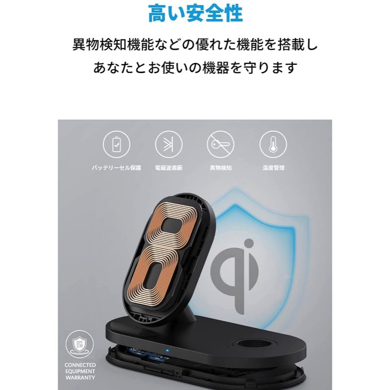 Apple WatchやiPhone、Galaxyを含むQi対応の各種スマートフォン等幅広い機器でワイヤレス充電が可能です。最適な急速充電器で
