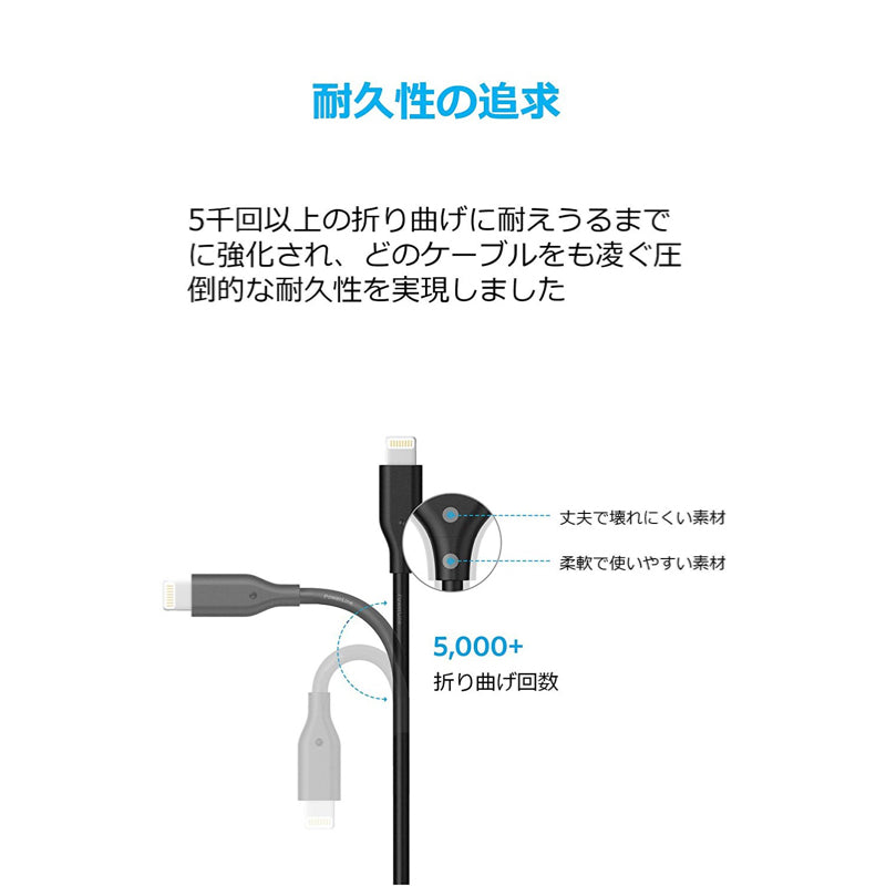 高耐久素材で強化されたUSBケーブル。Anker PowerLineは従来の製品に比べ格段に頑丈になりました。