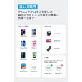 | 対応機種 | 対応機種 (急速充電対応) スマートフォン:iPhone 14 / 14 Plus / 14 Pro / 14 Pro Max / 13 / 13 mini / 13 Pro / 13 Pro Max / 12 / 12 mini / 12 Pro / 12 Pro Max / SE (第3世代) / SE (第2世代) / 11 / 11 Pro / 11 Pro Max / XS / XS Max / XR / X / 8 Plus / 8 他 タブレット端末:iPad (第9世代) / iPad Air (第3世代) / iPad Pro (12.9インチ) (第2世代) / iPad mini (第5世代) 他 その他:AirPods Max 対応機種 (急速充電非対応) スマートフォン:iPhone 7 / 7 Plus / iPhone SE (第1世代) / 6S / 6S Plus / 6 / 6 Plus タブレット端末:iPad Air (第1世代) / iPad Air (第2世代) / iPad mini (第2世代) / iPad mini (第3世代) / iPad mini (第4世代) / iPad 7/ 6 / 5 その他:AirPods / AirPods Pro |