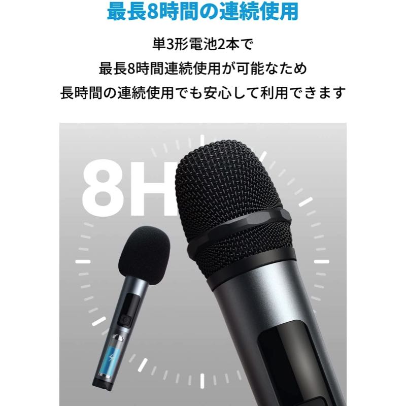 1台のプロジェクターに対してマイク2本をペアリングして使用することが可能なため、2人以上で同時に使用できます。最長8時間の連続使用