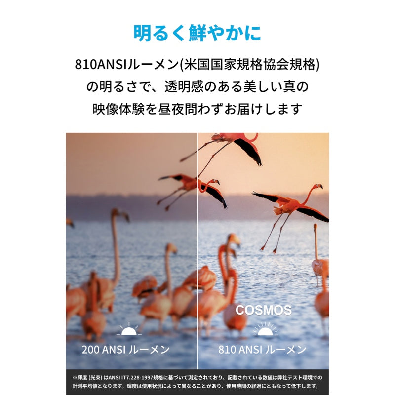 810ANSIルーメン (米国国家規格協会規格) の明るさで、 美しい映像を楽しむことができます。