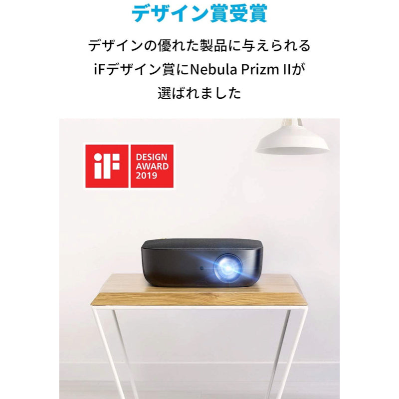 | パッケージ内容 | Nebula Prizm II、リモコン (単4電池2本同梱) 、変換用アダプター、電源アダプター、クイックスタートガイド、18ヶ月保証 + 6ヶ月 (Ankerで会員登録後)、カスタマーサポート | ||