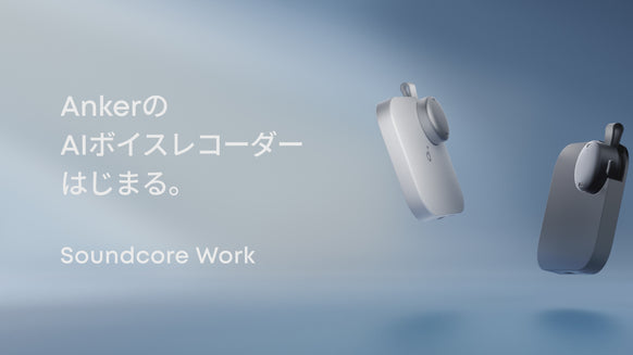 | パッケージ内容 | Soundcore Work (マイク本体、カード型充電ケース) 、USB-C & USB-A ケーブル、ネックレスチェーン、マグネットリングステッカー、クイックスタートガイド、18ヶ月保証 + 6ヶ月 (Ankerで会員登録後) 、カスタマーサポート |