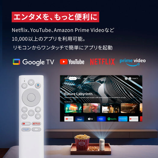 世界最小※Google TV搭載プロジェクター。手のひらサイズのコンパクトさで、省スペースで迫力の映像を楽しめます。