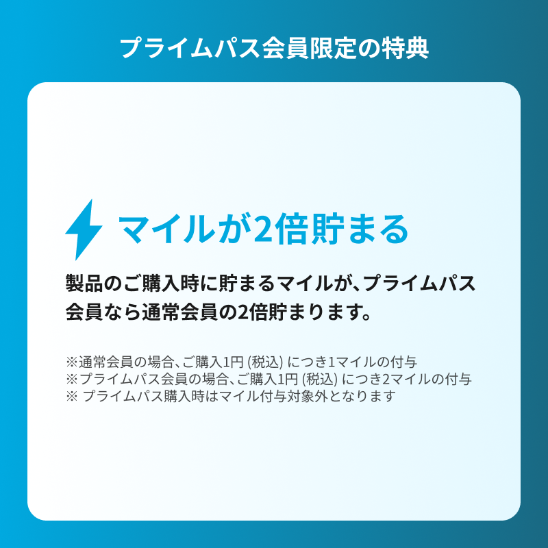 ※ プライムパス会員の場合、ご購入1円 (税込) につき2マイルの付与