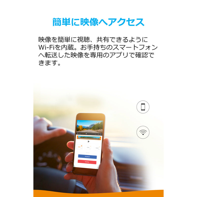 映像を簡単に視聴、共有できるようにWi-Fiを内蔵。専用アプリを使用し、お手持ちのスマートフォンへ映像を転送することもできます。GPS搭載