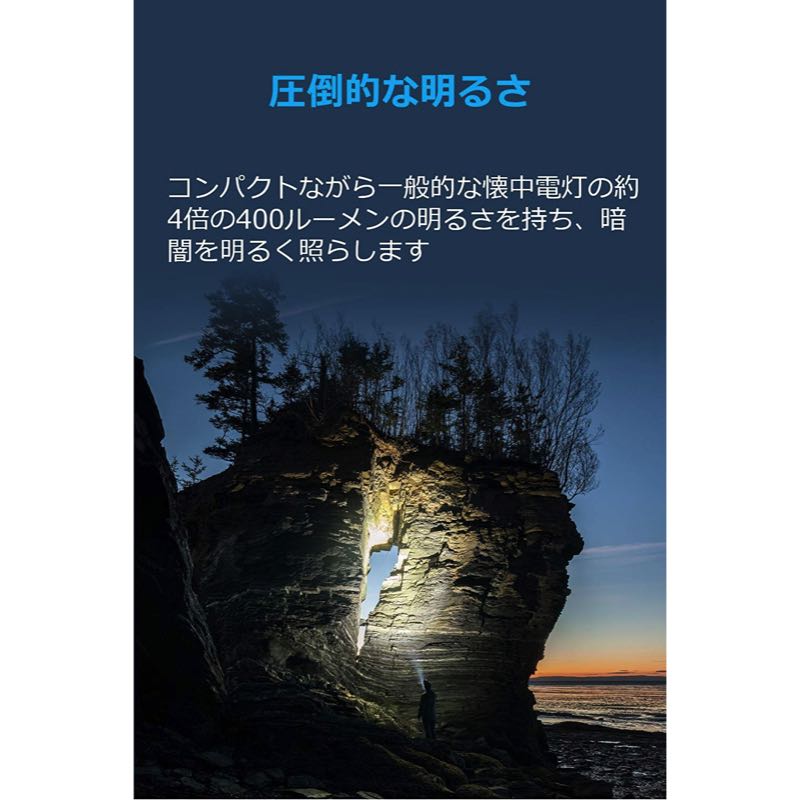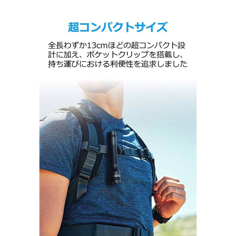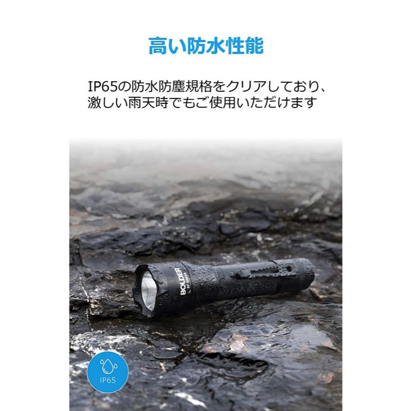 | パッケージ内容 | Anker Bolder LC40 LEDフラッシュライト、3350mAhリチウムイオンバッテリー、取扱説明書、Micro USBケーブル、18ヶ月保証 + 6ヶ月 (Ankerで会員登録後)、カスタマーサポート |