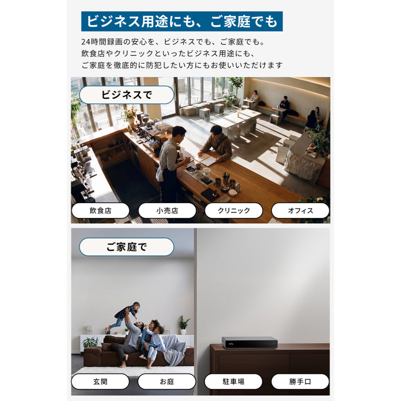 | パッケージ内容 | Eufy Network Video Recorder S4、ACアダプタ、HDMIケーブル、イーサネットケーブル (1m)、USBマウス、クイックスタートガイド、18ヶ月保証 + 6ヶ月 (Ankerで会員登録後) 、カスタマーサポート |