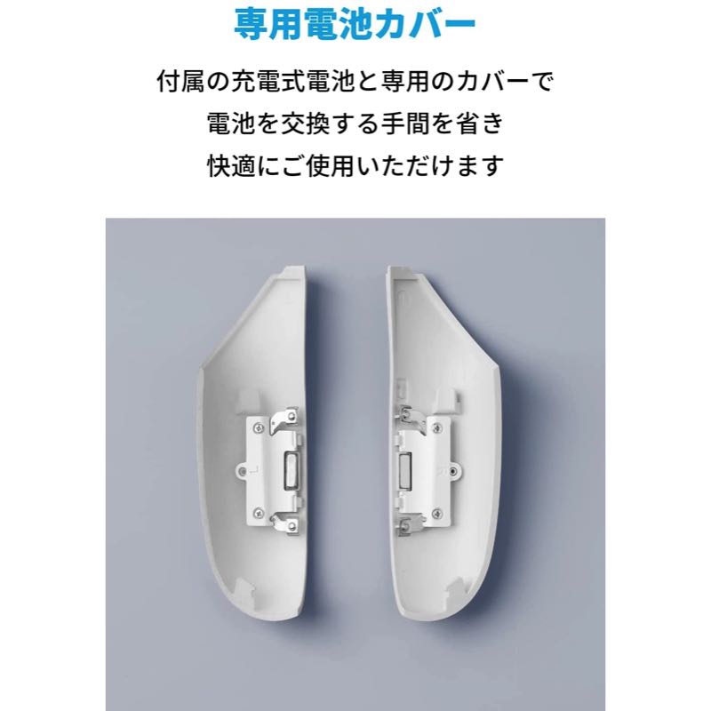 付属の充電式電池と専用のカバーを併用することで、カバーを外して電池を交換する手間を省き、快適に充電可能です。