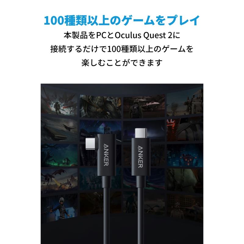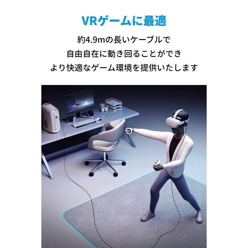 Anker 712 USB-C & USB-C ケーブルををPCとOculus Quest 2に接続するだけで、100種類以上のゲームを楽しむことができます。