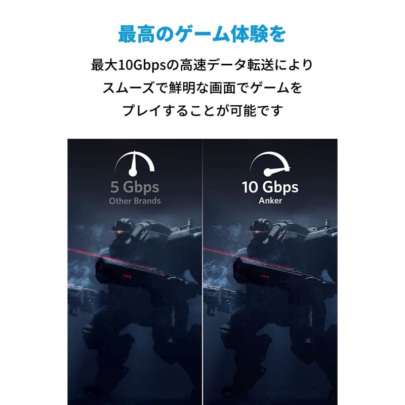 一般的な5Gbpsのケーブルの2倍の速さである最大10Gbpsの高速データ転送により、鮮明な画質でゲームが楽しめます。